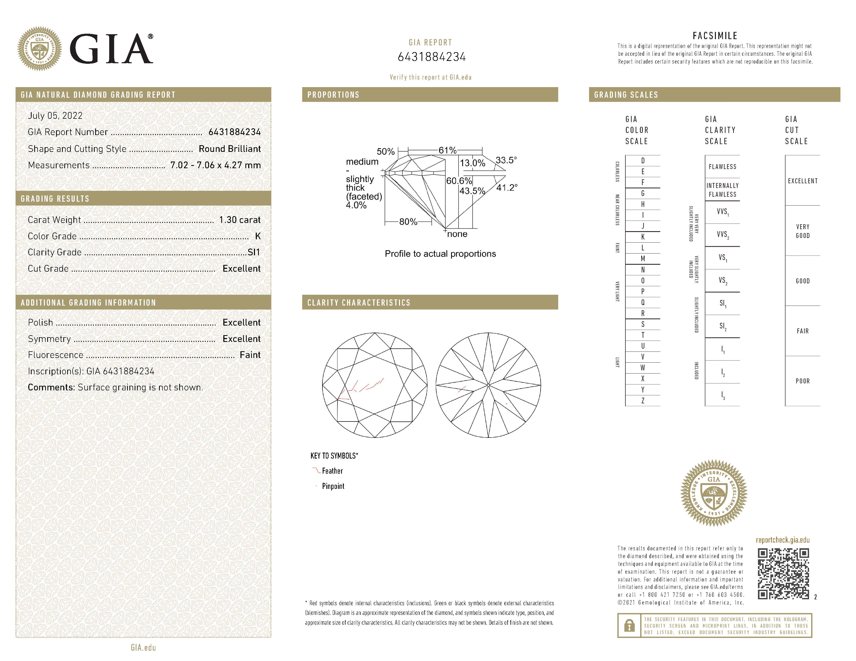 | HIA 28134 | Round | 1.34 | I | SI1 | |