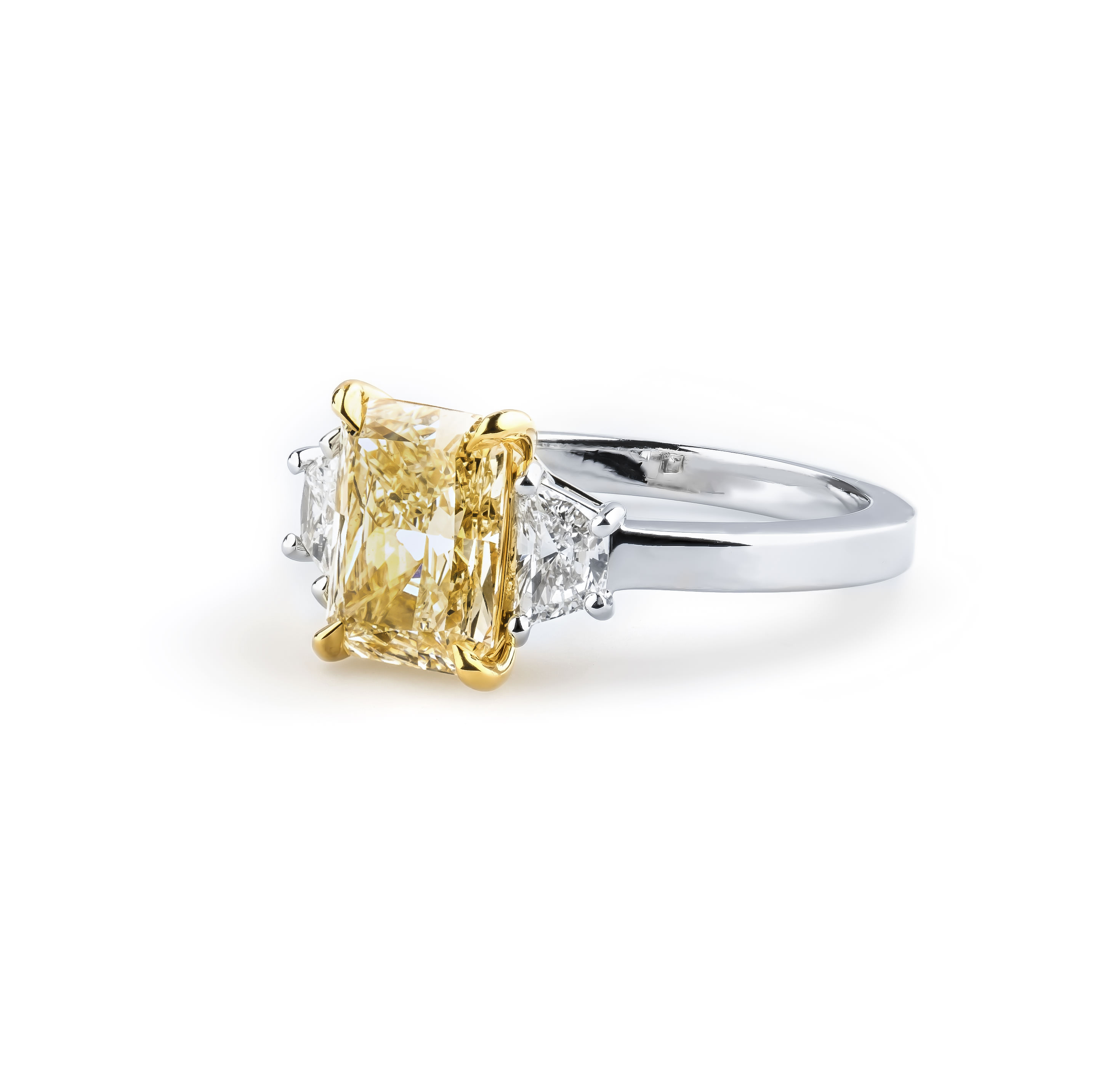 Radiant Fancy Light Yellow and Trapezoid Ring 2.15 rad fly si1 gia 0.40 tw trapezoid 32.40 ct tw
