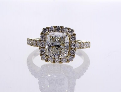 Cushion Halo Ring 2.39 ct cu k vs2 gia 0.79 tw melee 26.44 ct tw