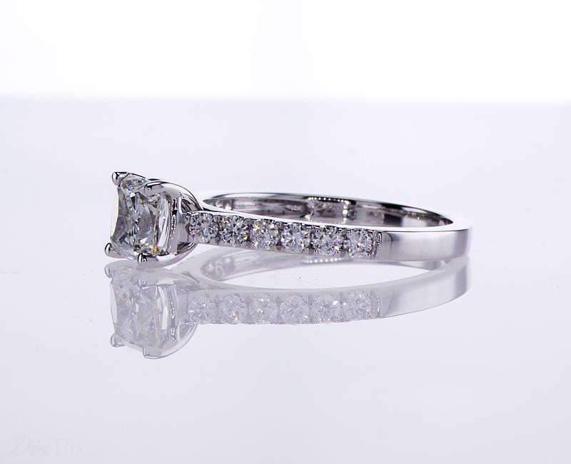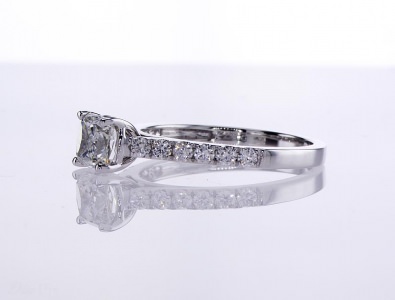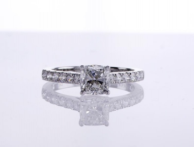Cushion Solitaire Ring 1.02 ct cu h si1 gia 0.37 tw melee 14.69 ct tw