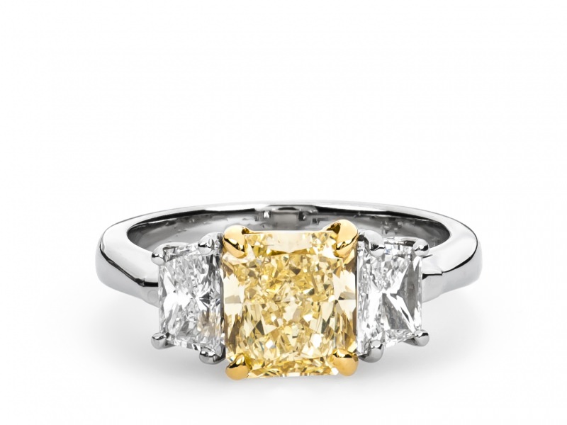 Fancy Light Yellow Radiant and Trapezoid Ring 2.05 ct fly si1 gia 1.00 wh trapezoid 38.50 ct tw